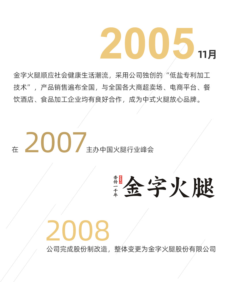 >金字火腿順應社會健康生活潮流,采用公司獨創(chuàng)的“低鹽專利加工技術”,產(chǎn)品銷售遍布全國,與全國各大商超賣場、電商平臺、餐飲酒店、食品加工企業(yè)均有良好合作,成為中式火腿放心品牌。