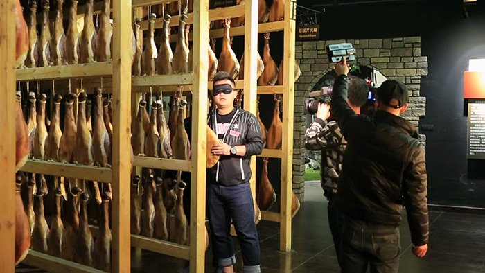 浙江第一美食類電視欄目《廚星高照》的主持人陳黃臻號稱美食小霸王,肉食主義捍衛(wèi)者。來到巴瑪火腿的第一件事就是游覽展示了各種火腿文化的世界火腿博覽館,在這里黃臻不僅了解了世界各地的火腿品種,而且還展示了盲眼摸腿的技藝,令巴瑪火腿的工作人員也是連連贊賞。