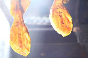 沒有優(yōu)質(zhì)的豬種,就沒有優(yōu)質(zhì)的火腿,這是火腿界質(zhì)樸的真理。許多人都把火腿想當(dāng)然地理解為腌臘肉,事實(shí)上,火腿屬于發(fā)酵肉,與葡萄酒、奶酪同屬于發(fā)酵類食品。制作火腿過程中,除了腌制清洗風(fēng)干程序之外,最重要的過程是發(fā)酵熟化。 從火腿生產(chǎn)到最終完成,至少需要一年的時間,如果想得到一支高水準(zhǔn)的火腿,則需要三年的“陳釀”。